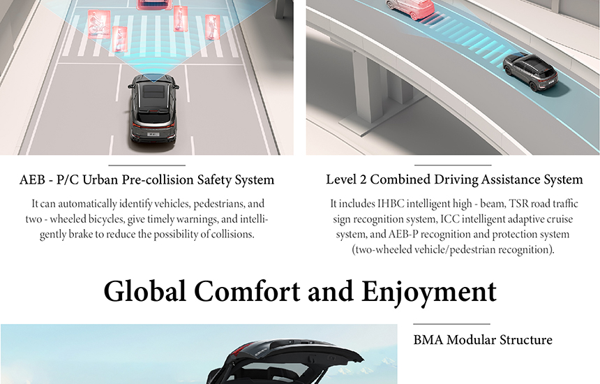 Features a sporty star-cross grille design, intelligent cabin with 12.3-inch screen, 540° transparent chassis, and advanced voice assistant. Ideal for young urban drivers.