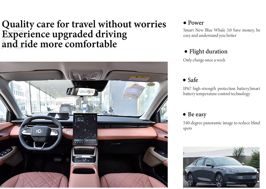 The Nevo A05 features a smart cabin with a Qualcomm 8155-powered infotainment system and dual-zone voice control. Ambient lighting and premium sports seats create a luxurious driver-focused environment. Its PHEV powertrain combines a 1.5L engine with an electric motor for 185kW total output. The system enables rapid acceleration while maintaining 1.2L/100km fuel efficiency and 30-minute fast charging.