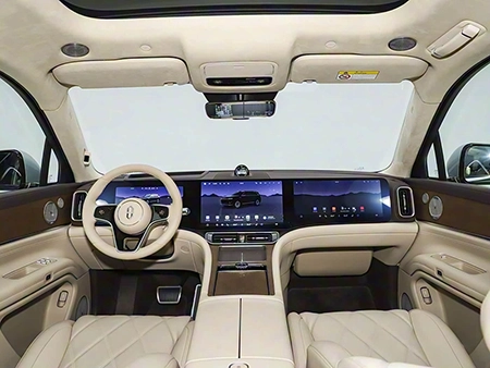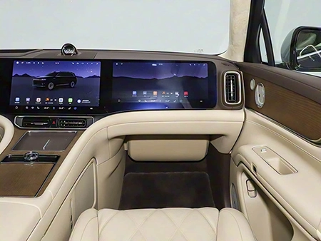 AITO M9 Five-Seat Variant: In terms of exterior design, it still adopts the "Kunpeng Spreading Its Wings" design philosophy, with an overall style that exudes understated luxury amid simplicity. The new model features the common closed grille design at the front; the light clusters on both sides have a relatively simple shape, connected by a full-width light bar in the middle. Inside the headlight clusters, functions including projector headlights, adaptive matrix headlights, adaptive low-beam headlights, and intelligent interactive matrix headlights are integrated. Among them, the HUAWEI XPIXEL Smart Projector Headlights add a new intelligent welcome light sequence: "Phoenix Dancing in the Sky".