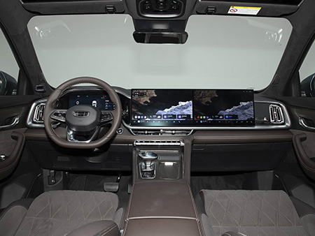 The interior is where the Xingyue L Oriental Radiance truly stands out. Most eye-catching are the dual 14.6-inch touchscreens on the center console, paired with a 12.3-inch digital instrument cluster and a 25.6-inch AR-HUD (Augmented Reality Head-Up Display) — together creating a seamless multi-screen interactive experience.The interior materials have also been upgraded, featuring wood grain trim and eco-friendly suede. These premium materials craft a minimalist luxury ambiance, with a noticeable boost in overall refinement.