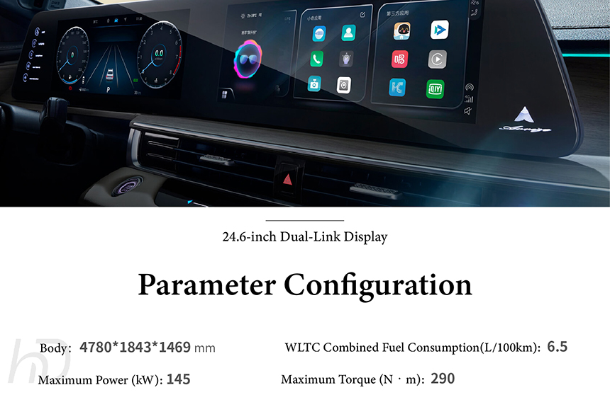 At the core of its smart cockpit is the high-performance Snapdragon 8155 Chip with 7nm Process, ensuring lightning-fast system responsiveness. This powers the immersive 24.6-inch Dual-Link Display, which serves as the intuitive visual and interactive hub. The seamless integration enables advanced voice control, seamless smartphone connectivity, and smooth multi-tasking. Together, they deliver a truly modern and connected driving environment.