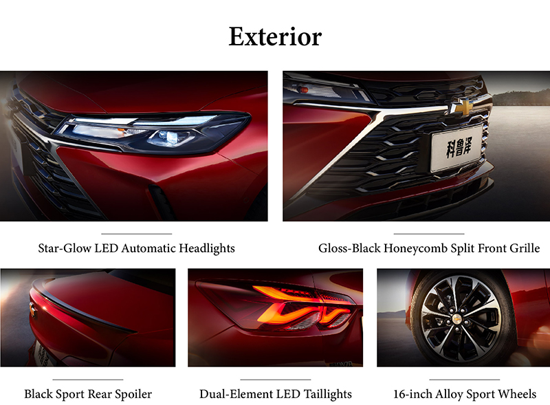 The Chevrolet Monza commands attention with its Star-Glow LED Automatic Headlights, delivering sharp, intelligent illumination that adapts to driving conditions. Its bold front fascia is defined by a Gloss-Black Honeycomb Split Front Grille, creating a dynamic and aggressive sporty character. At the rear, the distinctive Dual-Element LED Taillights provide a striking visual signature that enhances both style and visibility. Together, these elements form a cohesive exterior design that masterfully blends modern sophistication with athletic presence.