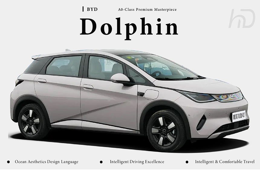 The BYD Dolphin Intelligent Driving Edition features a vibrant and dynamic exterior design, highlighted by its signature "Agile Fish-Leaping" rear taillights that create a vivid, flowing light signature. These taillights are integrated into a sleek, rounded rear fascia, emphasizing the car's compact and energetic silhouette. The overall design language remains playful and modern, appealing to urban drivers. This cohesive aesthetic combines youthful charm with a distinctive visual identity on the road.