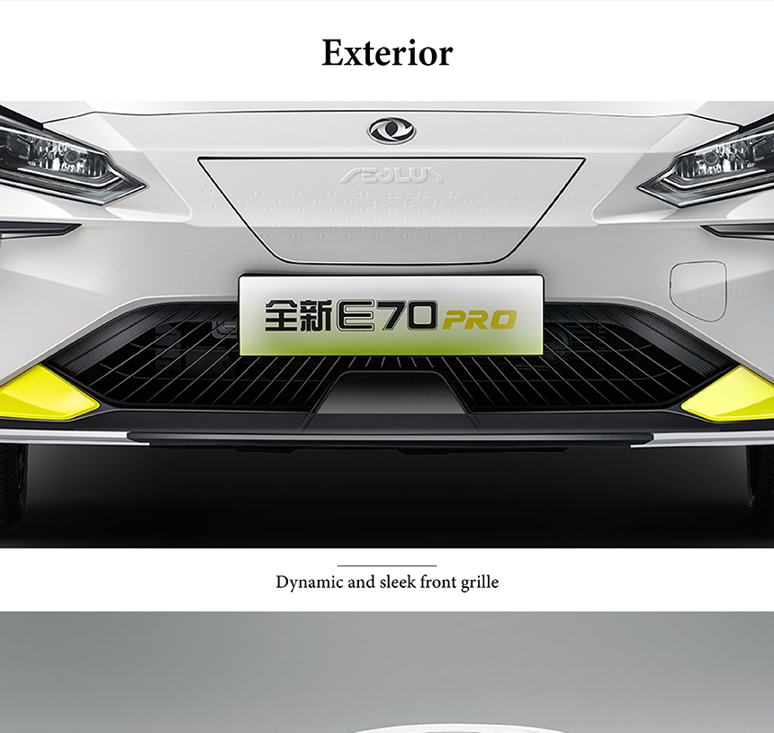 The Dongfeng Aeolus E70 presents a commanding presence with its Dynamic and sleek front grille, featuring sharp lines that emphasize a sporty and forward-moving stance. Its profile is defined by a Through-type 3D waistline design, creating a sense of fluid motion and sculptural elegance that runs the length of the vehicle. Illumination is elevated by Crystal lens headlights, which deliver precise, high-quality light output while adding a touch of refined sophistication. Together, these elements forge a cohesive exterior that balances athletic dynamism with modern, polished aesthetics.