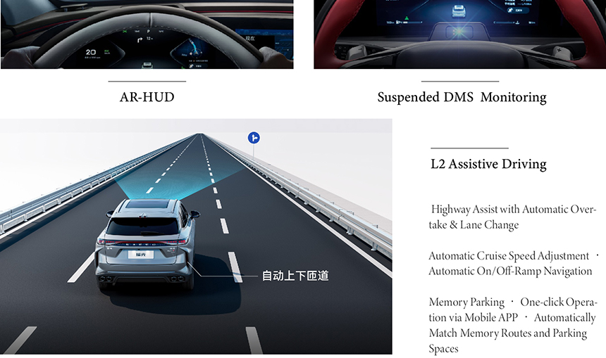 At the core of the Exeed Yaoguang's intelligent experience is the powerful Qualcomm Snapdragon 8155 chip, ensuring a fluid, responsive, and highly capable infotainment system. Critical driving information is projected clearly onto the windshield through its advanced Augmented Reality Head-Up Display, enhancing both safety and convenience. The vehicle is equipped with a comprehensive Level 2 Assistive Driving system, capable of managing acceleration, braking, and steering under certain conditions for a more relaxed and secure journey. This integration of cutting-edge computing, intuitive display technology, and driver assistance defines the Yaoguang's smart, user-centric philosophy.
