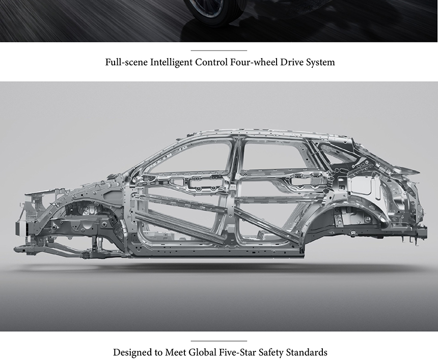 The Exeed Yaoguang is equipped with a Full-scene Intelligent Control Four-wheel Drive System, delivering responsive traction and balanced handling across diverse road conditions. This advanced drivetrain seamlessly adapts to urban streets, highways, and light off-road terrain, ensuring confidence and control in every scenario. Engineered with a robust chassis and stability-focused tuning, the vehicle is designed to meet Global Five-Star Safety Standards across major rating systems. Together, these technologies provide a secure, composed, and engaging driving experience built on a foundation of trusted safety.