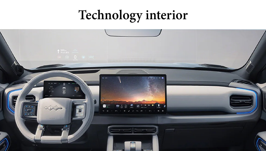 BYD—Ti3 showcases a cutting-edge Technological Front Fascia, integrating illuminated matrix elements and aerodynamic openings that enhance both visual impact and cooling efficiency. This innovative design features a dynamic light signature that combines daytime running lights with interactive welcome sequences, creating a distinctive brand identity. The fascia's multifunctional architecture optimizes airflow to critical components while maintaining a bold, road-commanding presence. This sophisticated integration of technology and aesthetics establishes new standards for electric SUV design language.