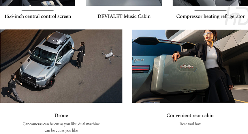 BYD—Ti3 revolutionizes cabin space utilization with its innovative Electric Front Trunk, offering 120L of waterproof storage accessible through smart gesture control and mobile app integration. The multi-functional Convenient Rear Compartment features one-touch electric folding seats with 12 adjustable configurations, expanding cargo capacity from 580L to 1600L while maintaining premium Nappa leather finishes. An integrated smart lighting system with motion sensors automatically illuminates both compartments, while drainable design and anti-slip surfaces enhance practicality for adventure gear. These sophisticated storage solutions work in concert with the vehicle's intelligent climate control to maintain optimal temperature for stored items, seamlessly blending luxury aesthetics with extreme functionality for modern urban adventurers.