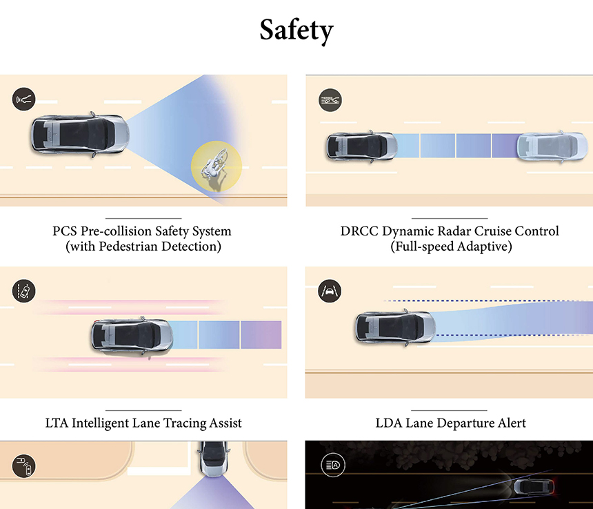 The Toyota bZ4X integrates an advanced safety suite featuring DRCC Dynamic Radar Cruise Control, which maintains a preset distance and speed relative to traffic for relaxed highway travel. It is complemented by LTA Intelligent Lane Tracing Assist, providing gentle steering inputs to help keep the vehicle centered within its lane. AHB Automatic High Beam Control enhances nighttime visibility by automatically switching between high and low beams to optimize illumination without dazzling other drivers. Together, these intelligent systems work seamlessly to reduce driver workload and elevate overall safety confidence.