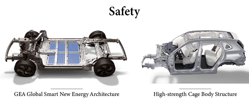 The foundation of safety is the advanced GEA Global Smart New Energy Architecture, which provides an integrated and intelligent framework for comprehensive protection. This architecture features a High-strength Cage Body Structure built with ultra-high-strength materials, creating a fortress-like safety zone for occupants. Together, they deliver robust crashworthiness and integrated battery safety, ensuring peace of mind. The result is a dual-layered safety ecosystem designed to meet and exceed the most stringent global safety standards.