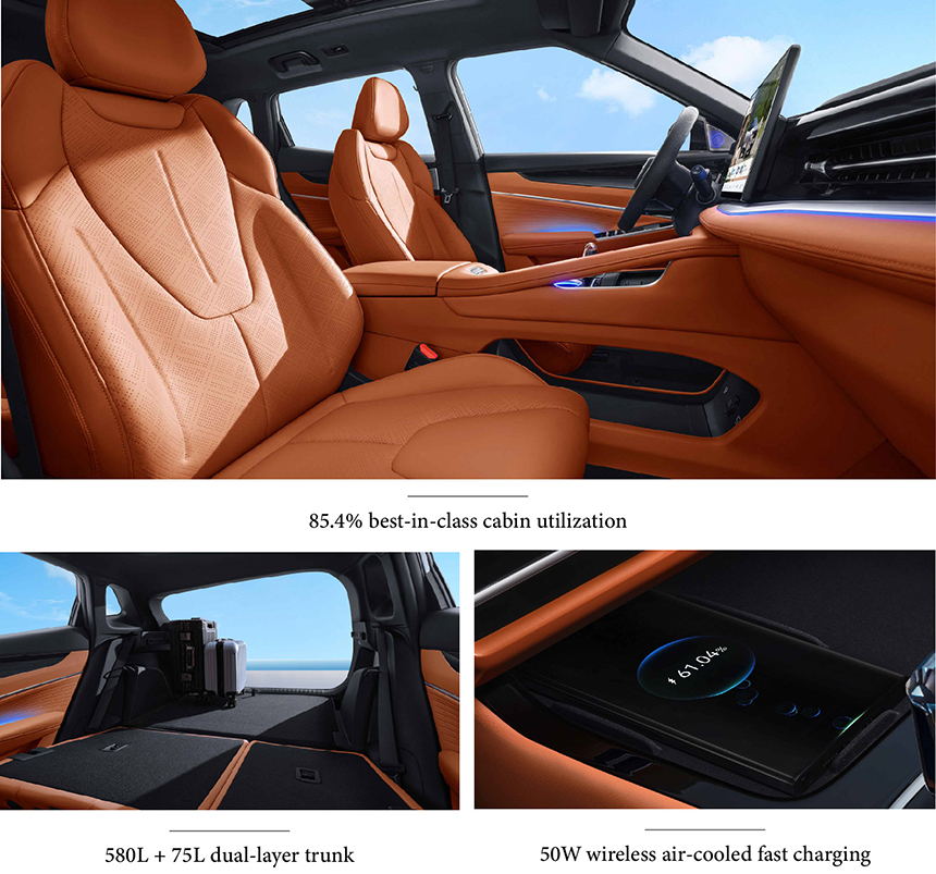 The Geely Boyue (Coolray) enhances cabin convenience with a 50W wireless air-cooled fast charging pad, enabling rapid smartphone power replenishment. Its integrated cooling system effectively manages heat during charging, ensuring both high speed and safety. Strategically positioned for easy access, this feature complements the vehicle's modern infotainment system. It represents a key detail in the thoughtful, tech-forward design of the Boyue's connected digital cockpit.