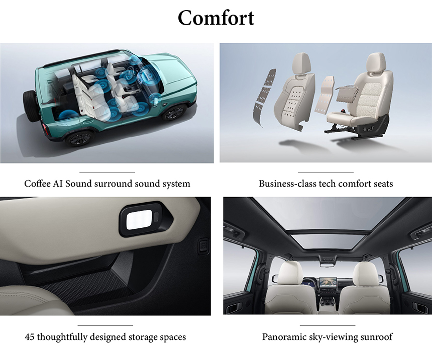 The Haval Menglong 2026 is engineered with a high-performance DNA, defined by the innovative second-generation Hi4 intelligent four-wheel-drive hybrid technology that delivers a more fuel-efficient, more exhilarating, and safer drive. It offers versatile capability through seven driving modes, allowing the system to be perfectly optimized for everything from daily efficiency to challenging off-road terrain. This sophisticated integration allows the vehicle to instantly adapt its powertrain and traction response. The result is a confident, powerful, and highly adaptable driving experience for any condition.