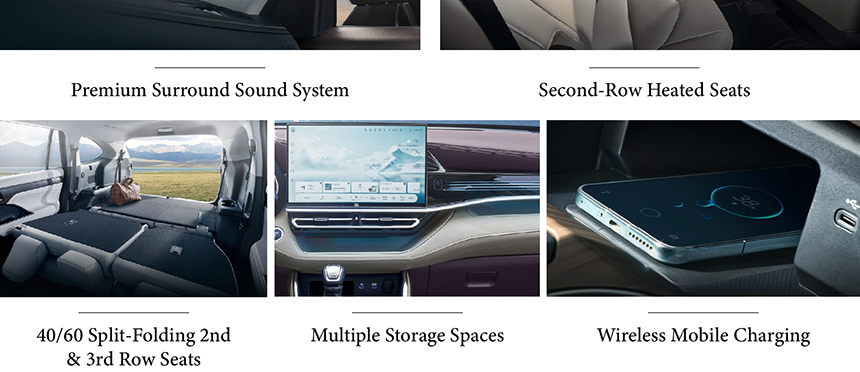 The Toyota Highlander's cabin is designed for comfort and ambiance, featuring a split-type panoramic sunroof that floods the interior with abundant natural light. An immersive premium surround sound system delivers exceptional audio quality for all passengers. The thoughtful amenities extend to second-row heated seats, ensuring warmth and comfort on cooler days. These features collectively create a versatile, luxurious, and family-friendly interior space.