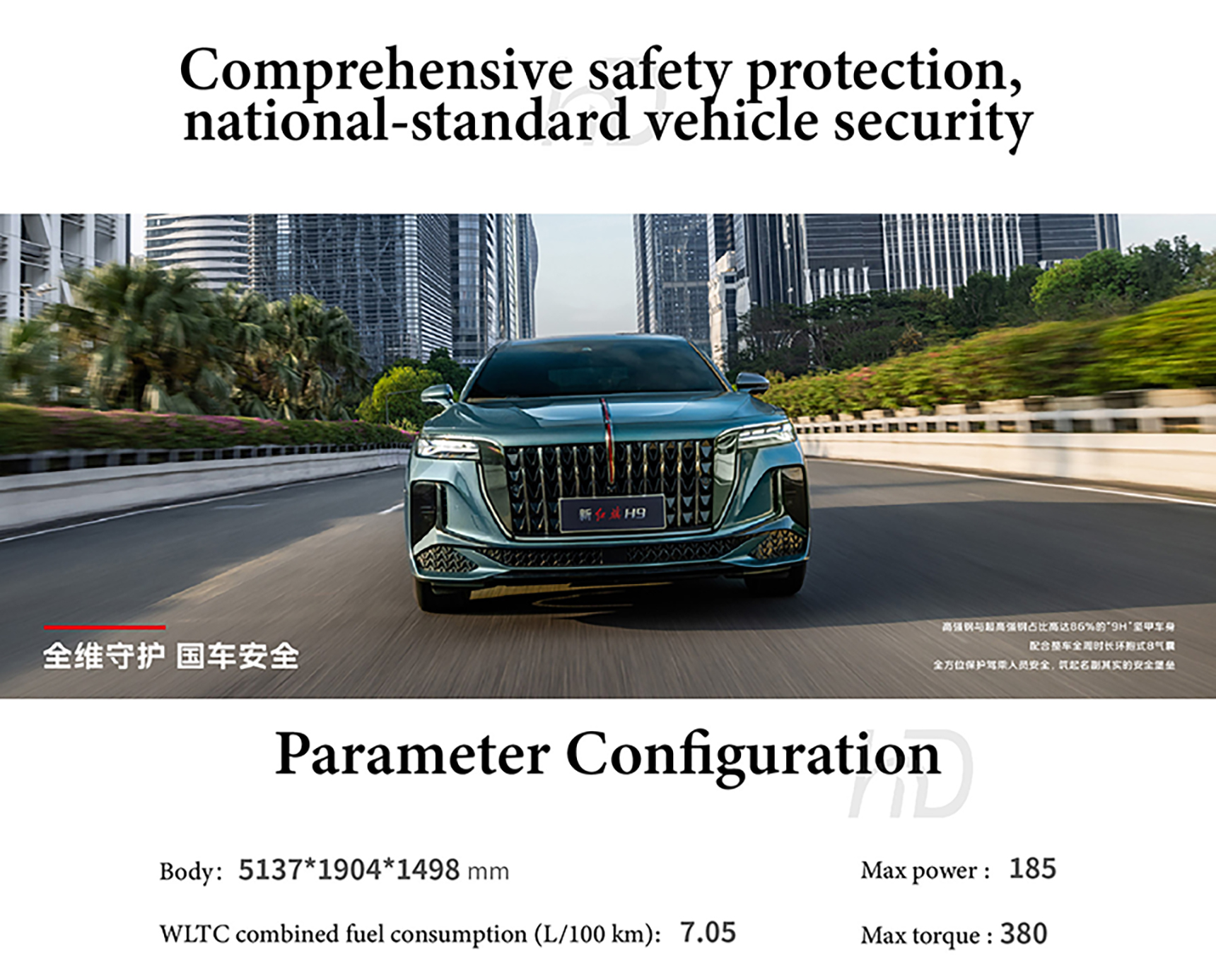 The Hongqi H9 is a flagship luxury sedan featuring a majestic exterior with iconic grille and sleek lines. Its cabin offers a premium experience with high-end materials, digital displays, and spacious comfort. Advanced intelligent systems provide connectivity and driver assistance for a modern, secure drive. Comprehensive safety is ensured through a robust body structure and proactive protection technologies.