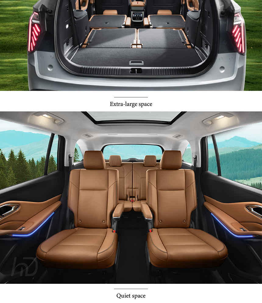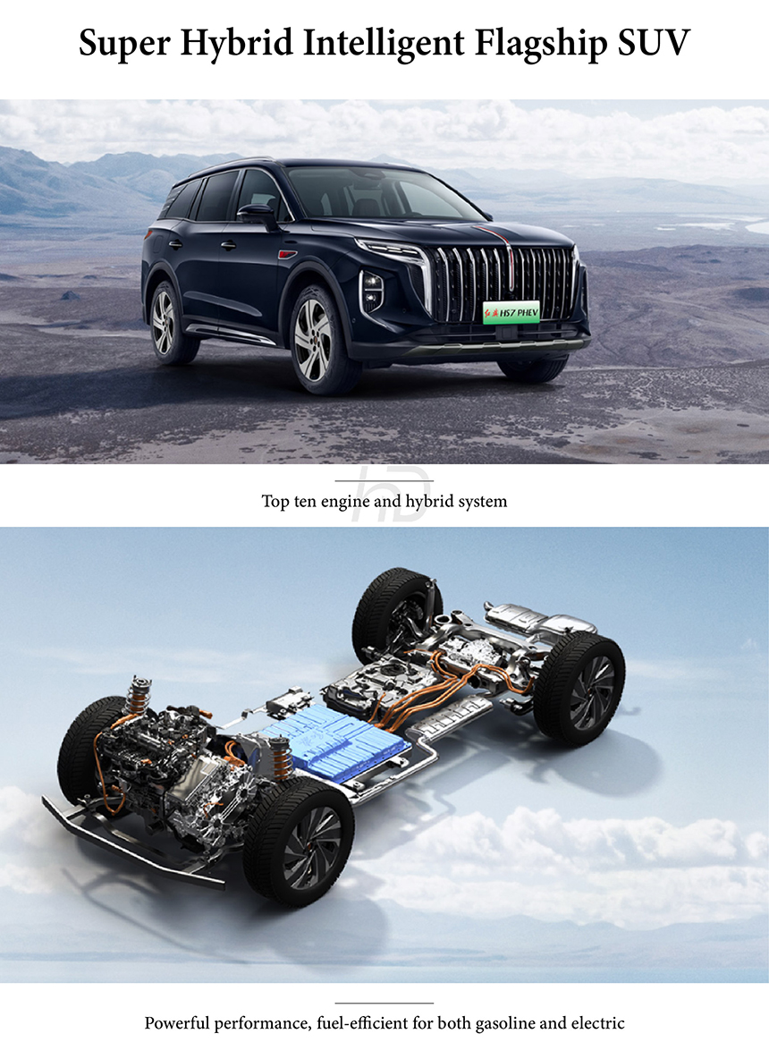 The Hongqi HS7 is powered by an award-winning Top Ten Engine and hybrid system, recognized for its advanced engineering and efficiency. This sophisticated powertrain delivers powerful performance with robust acceleration and smooth power delivery. It is remarkably fuel-efficient for both gasoline and electric modes, optimizing energy use whether running on electricity or fuel. This results in a refined, responsive, and economical driving experience.
