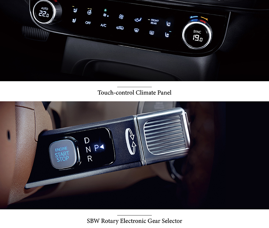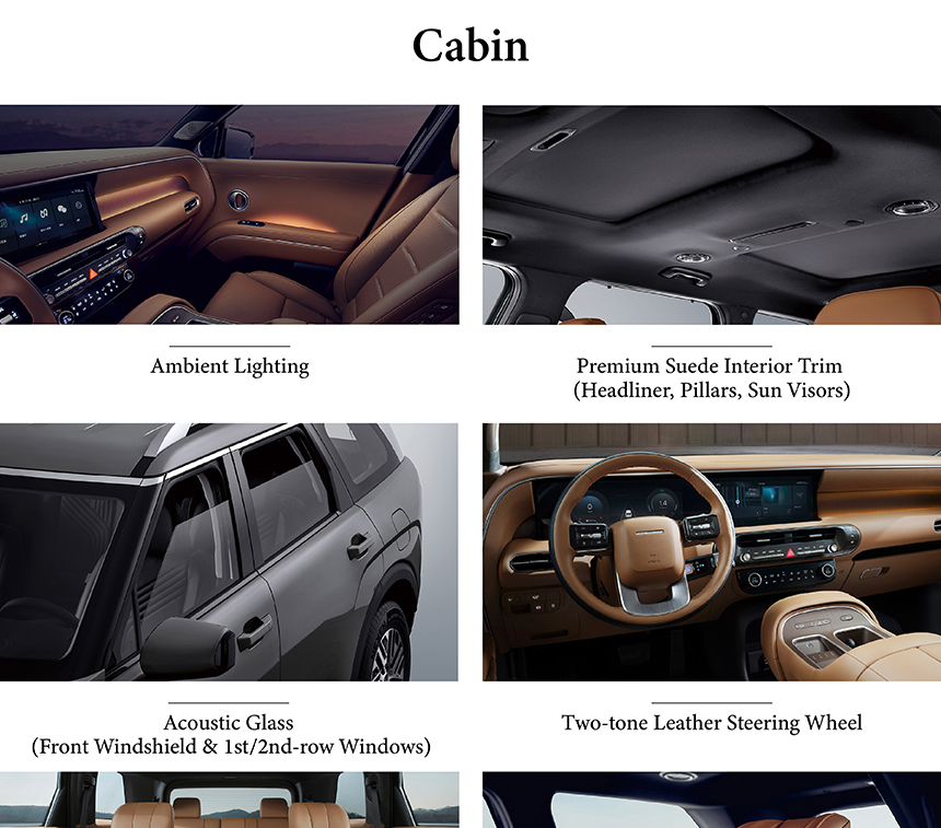 The Hyundai Palisade’s cabin is enveloped in serenity with Acoustic Glass (Front Windshield & 1st/2nd-row Windows), significantly reducing outside noise for a tranquil, library-quiet environment. A commanding 12.3-inch Panoramic Curved Instrument Display merges digital instrumentation and infotainment into a seamless, driver-focused interface. Effortless control is delivered by the SBW Rotary Electronic Gear Selector, combining intuitive operation with a clean, minimalist center console design. Together, these elements create a refined sanctuary where advanced technology and meticulous comfort converge in perfect harmony.