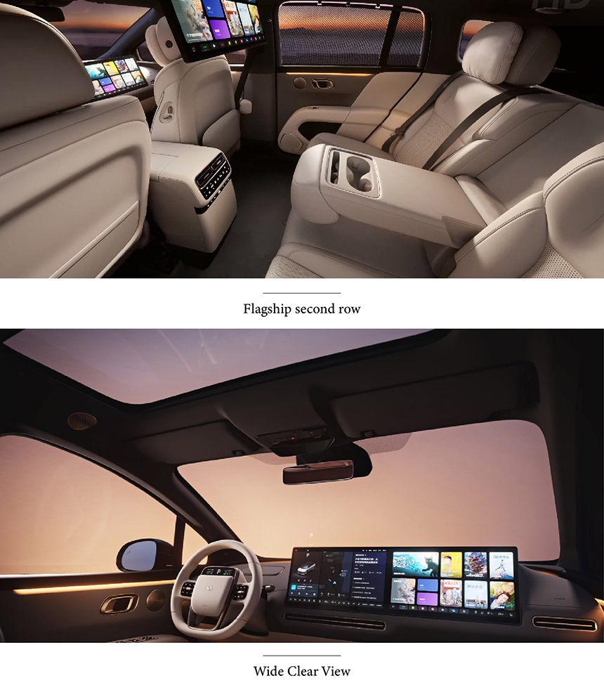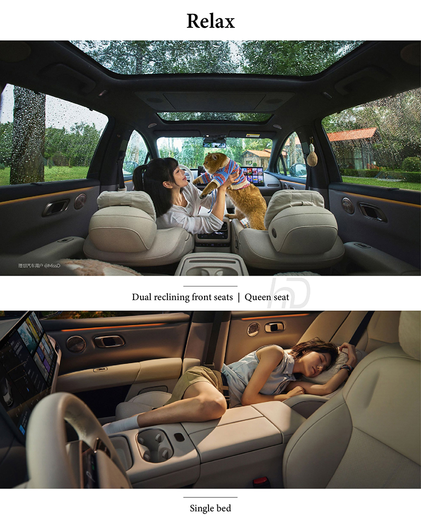 The Li Auto i6 redefines in-car comfort with its signature "Large sofa" style seating, offering an exceptionally spacious and lounge-like experience for all passengers. This domestic tranquility is further enhanced by a customizable multi-color ambient lighting system, which sets the perfect mood for every journey. The seamless integration of plush physical comfort with advanced atmospheric technology creates a uniquely serene and welcoming cabin environment. It successfully transforms the vehicle into a mobile relaxation space that prioritizes well-being and home-like familiarity.