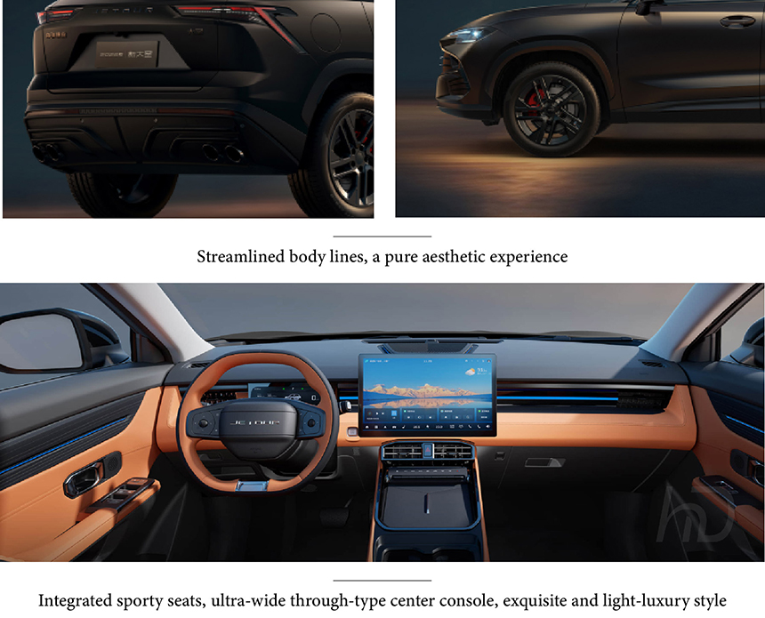 The Jetour Dashing 2026 commands attention with streamlined body lines, sculpted to optimize aerodynamic efficiency and project a dynamic forward motion. Integrated sporty seats are embedded into the cabin's architecture, featuring bold bolsters and premium upholstery that seamlessly extend from the interior to the door panels. These design elements work in harmony to create a continuous visual flow from the exterior's sculpted silhouette into the driver-focused cockpit. The result is a cohesive and aggressive stance that prioritizes both aesthetic appeal and a connected driving experience.