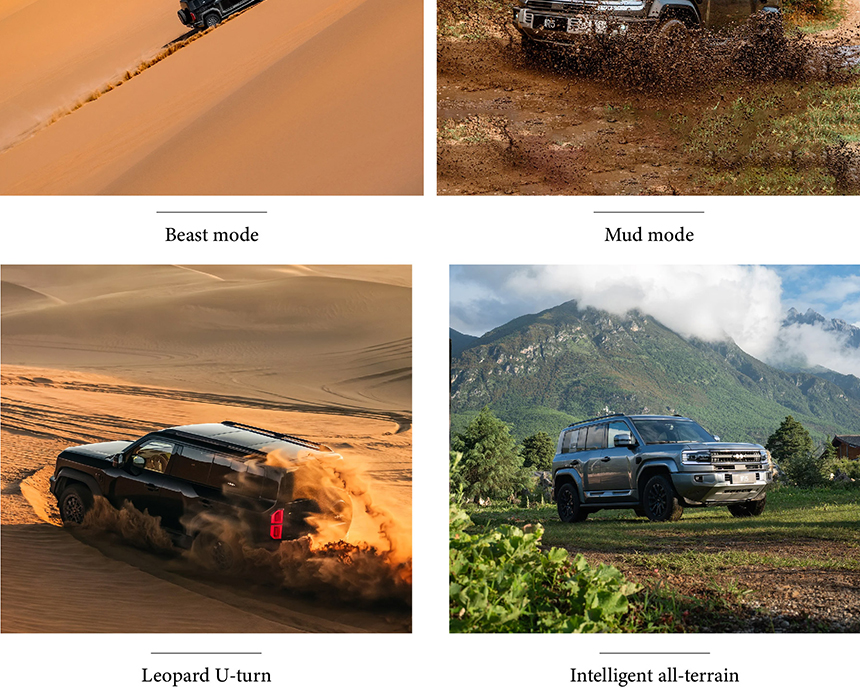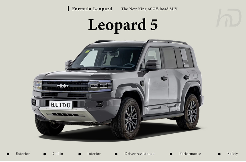 The Formula Leopard 5 is engineered as a versatile all-terrain SUV with performance modes for every scenario. It handles urban commuting with refined comfort and efficiency for daily driving. For off-road adventures, it offers dedicated Beast mode and Mud mode to confidently confront extreme conditions. An Intelligent all-terrain system seamlessly transitions between these modes, ensuring optimal traction and control everywhere.