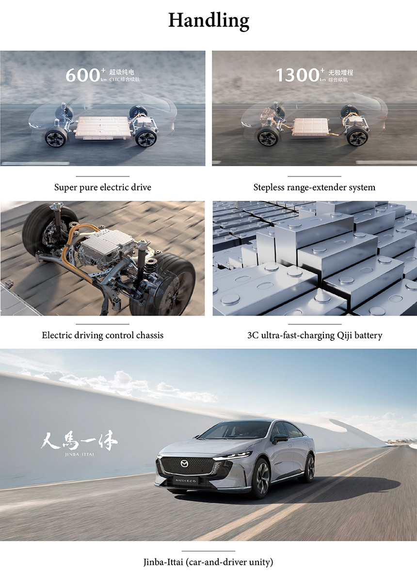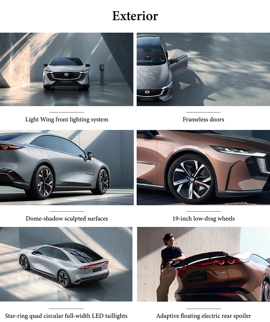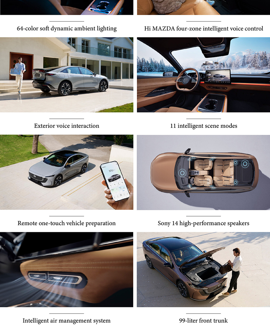 The Mazda EZ-6 is engineered with a holistic safety-first philosophy, built upon a robust cage-type high-strength safety body that forms a protective passenger shell. Fundamental battery safety is integrated into this structure, ensuring the high-voltage system remains secure in various conditions. Inside, comprehensive occupant protection is provided by a system of 9 airbags strategically placed throughout the cabin. This is complemented by a suite of 19+ active safety driving assistance systems, offering proactive monitoring and intervention to help prevent accidents.