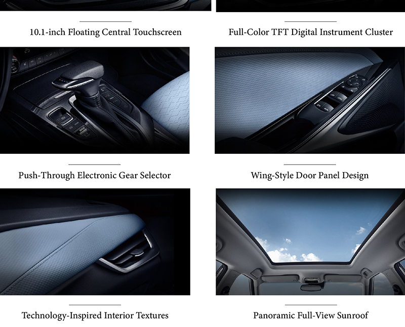 The Chevrolet Menlo welcomes occupants with a driver-focused Dual-Wing Floating Cockpit Design, creating a sense of spaciousness and intuitive control. Its Full-Color TFT Digital Instrument Cluster delivers crisp, customizable vehicle information at a glance, enhancing both style and functionality. The cohesive theme extends to the Wing-Style Door Panel Design, which integrates flowing lines and premium materials for a seamless visual experience. Together, these elements craft a modern, tech-forward cabin that harmoniously balances ergonomic comfort with sophisticated aesthetics.