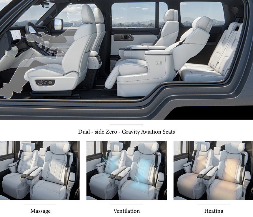 The Polestones 01 redefines in-car relaxation with its advanced seat system, featuring comprehensive seat massage, ventilation, and heating for personalized comfort in any climate. This premium experience is elevated by its signature dual zero-gravity aviation seats, designed to distribute body pressure evenly and support a near-horizontal reclining position. Together, these technologies work in harmony to significantly reduce physical fatigue on long journeys. The cabin effectively transforms into a first-class mobile lounge, prioritizing ultimate passenger well-being and luxury.