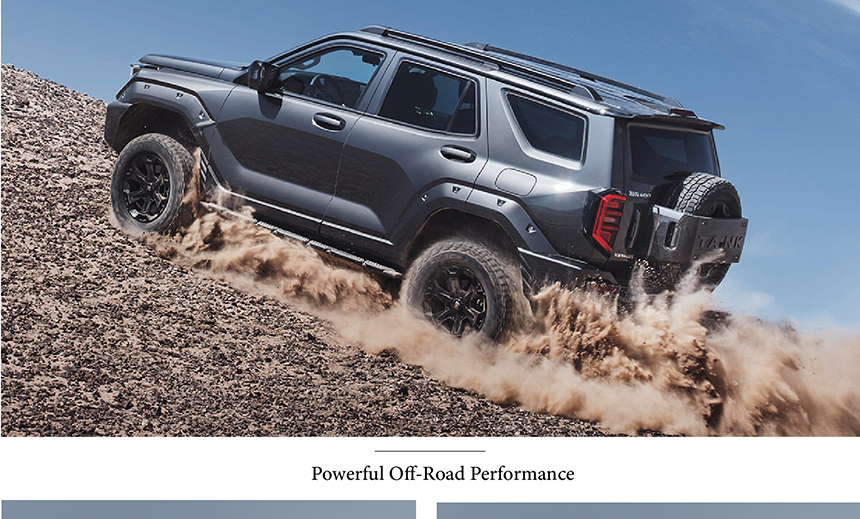The Tank 400 is built upon a robust professional off-road chassis, engineered with reinforced construction and optimized geometry to confidently tackle extreme terrain. This solid foundation, combined with advanced suspension and drivetrain technology, delivers truly powerful off-road performance, effortlessly conquering steep inclines, deep ruts, and challenging obstacles. Whether navigating rocky trails or sandy dunes, it ensures maximum traction, control, and durability. The result is an uncompromising off-road vehicle that blends exceptional capability with reassuring stability in every adventurous drive.