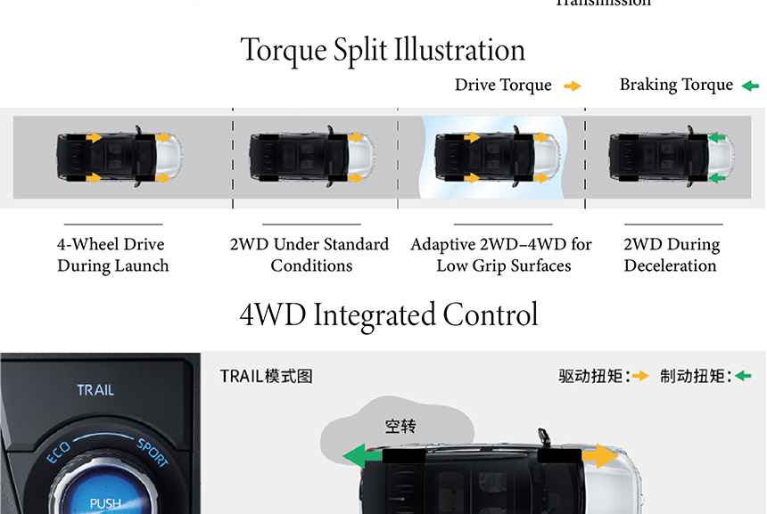 The new Toyota RAV4 offers versatile and efficient powertrains centered on the 2.0L/2.5L TNGA DYNAMIC FORCE engines paired with a responsive Direct Shift CVT transmission. These engines deliver a refined balance of power output and fuel efficiency, enhanced by intelligent valve timing and high thermal efficiency. For all-weather traction, the available 4WD Integrated Control system seamlessly manages torque distribution between the front and rear wheels. This combination ensures confident performance across daily commuting and more adventurous driving conditions.