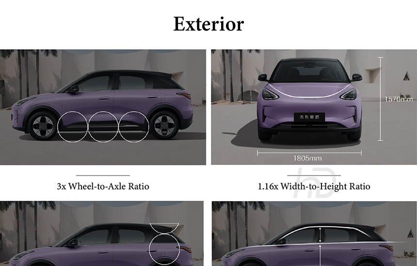 The design of the Geeli Xingyuan follows core principles of modern elegance and balance, starting with sleek Featherlight LED Headlamps. Its profile is defined by a dynamic 3x wheel-to-axle ratio, optimizing the vehicle's stance and proportions. These elements are harmonized under the timeless 0.618 golden proportion, ensuring every visual relationship is naturally pleasing. The result is a silhouette that appears both athletically poised and classically refined from every angle.