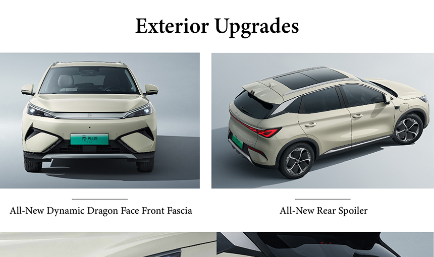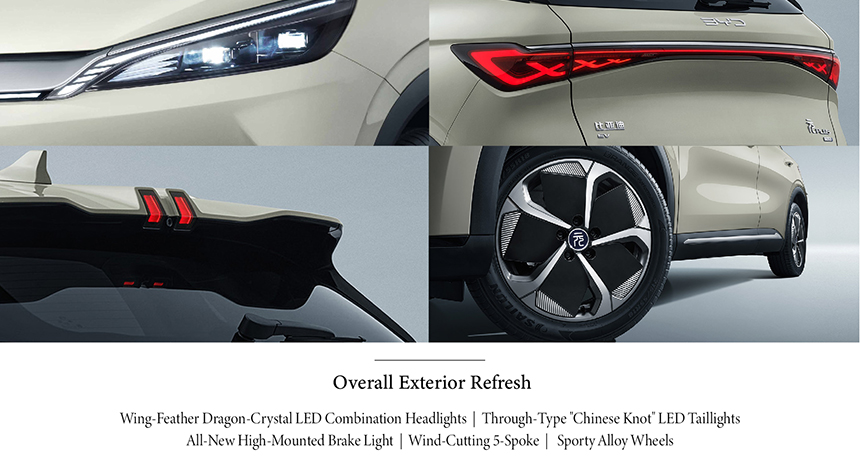 The BYD Yuan Plus showcases a bold and modern aesthetic, anchored by its all-new Dynamic Dragon Face front fascia, which presents a sleek and assertive visual identity. Flowing from this powerful front end are streamlined side profiles that enhance aerodynamic efficiency. At the rear, distinctive through-type "Chinese Knot" LED taillights combine cultural symbolism with advanced lighting technology for a memorable signature. This cohesive design language results in an SUV that is both dynamically contemporary and rich in distinctive character.