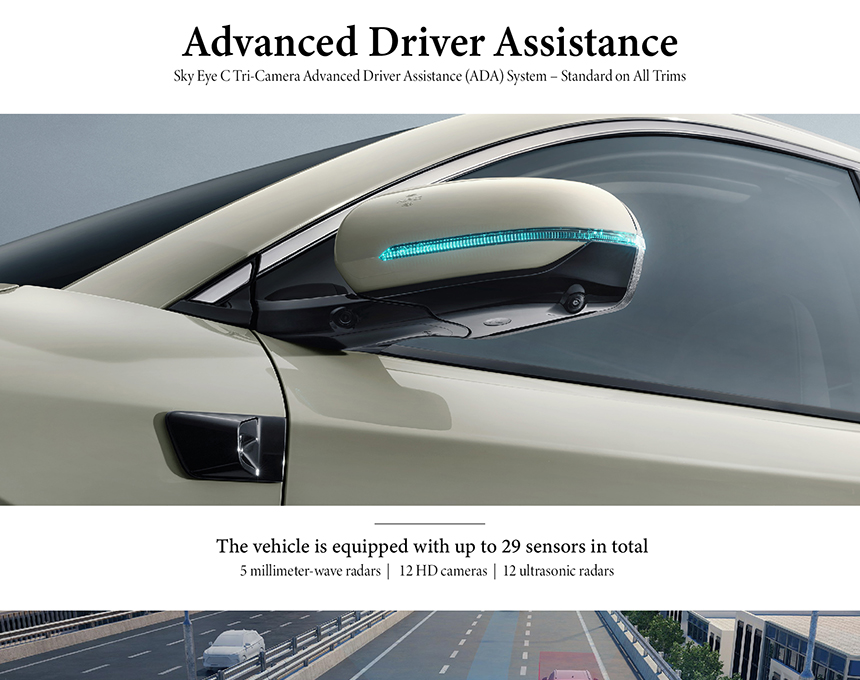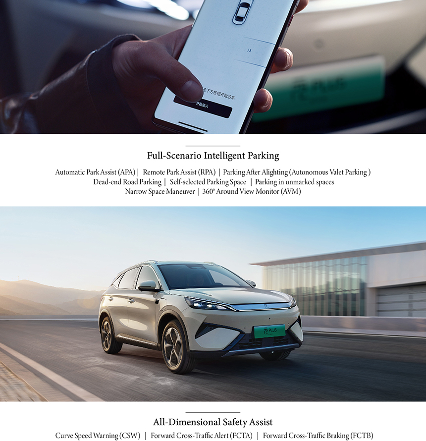 The BYD Yuan Plus achieves comprehensive environmental perception by being equipped with up to 29 sensors in total. This sophisticated multi-sensor architecture provides the system with a detailed, real-time understanding of its surroundings. It enables precise functions such as Adaptive Cruise Control (ACC) and Lane Keeping Assist (LKA). This extensive sensor network forms the robust foundation for a safer and more convenient assisted driving experience.