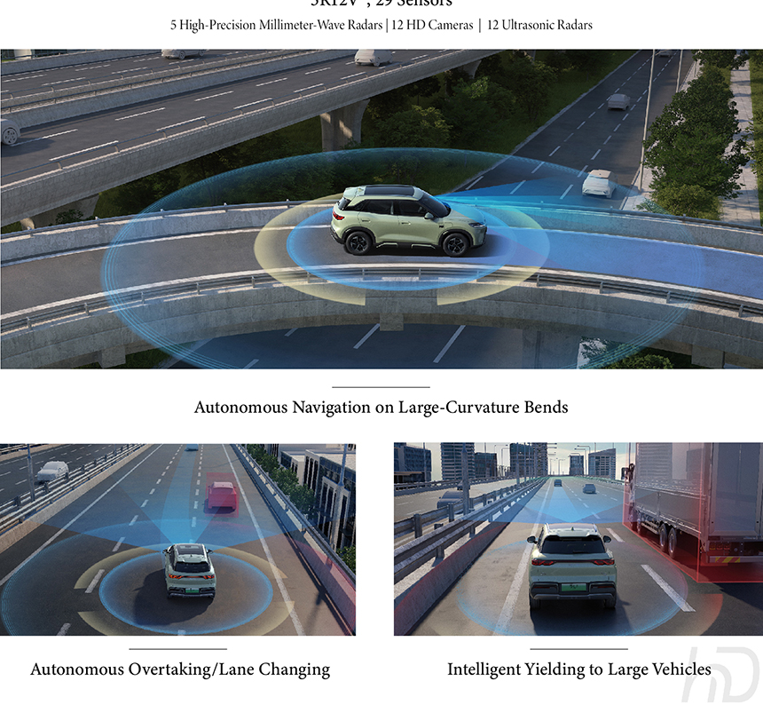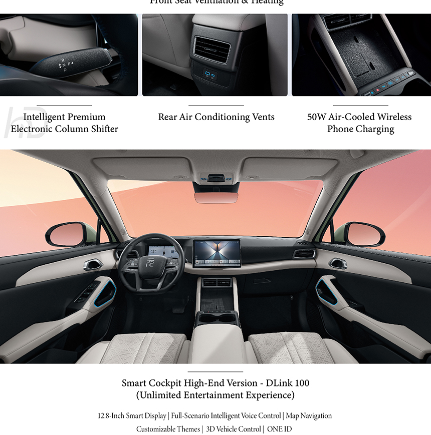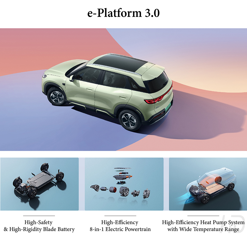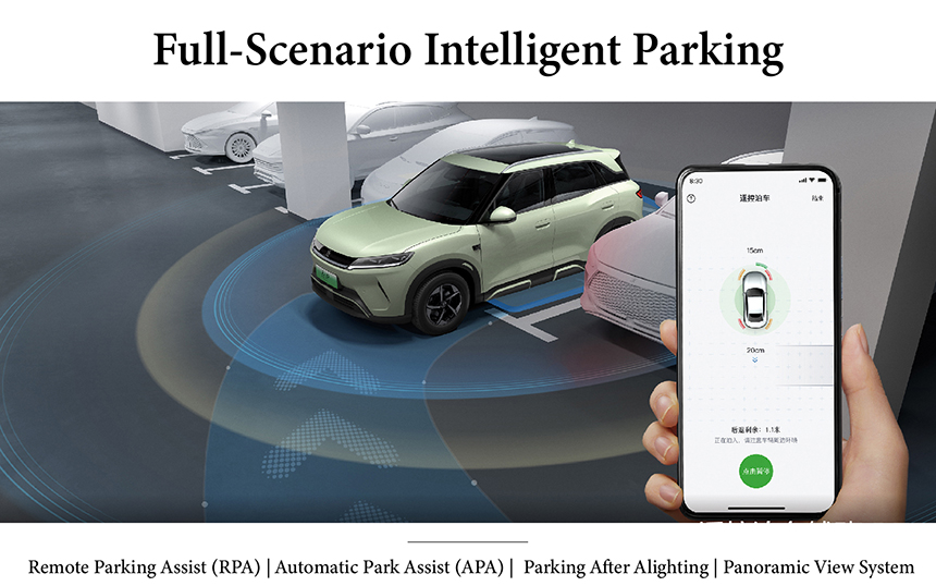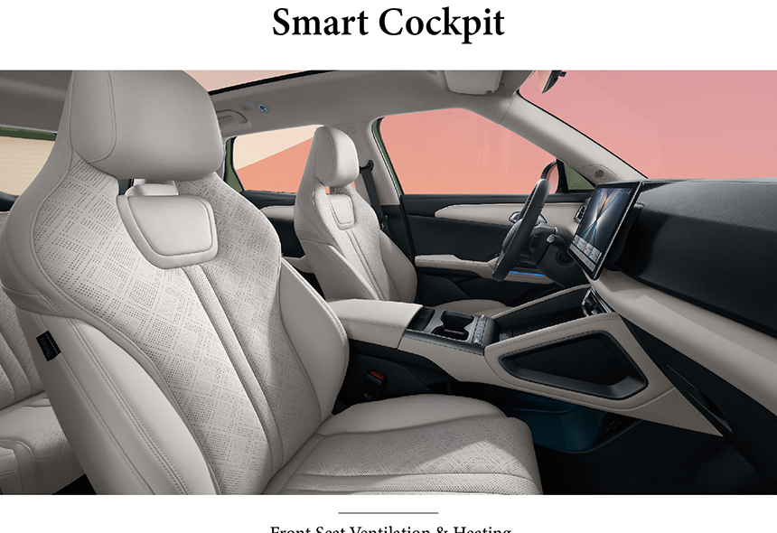 The BYD Yuan UP's cabin merges smart technology with thoughtful comfort. It features a 50W air-cooled wireless phone charging pad, which powers devices rapidly while preventing overheating. Enhancing passenger comfort, it offers front seat ventilation & heating, adaptable to any climate for a pleasant ride. These focused amenities create a connected and physically accommodating interior environment.