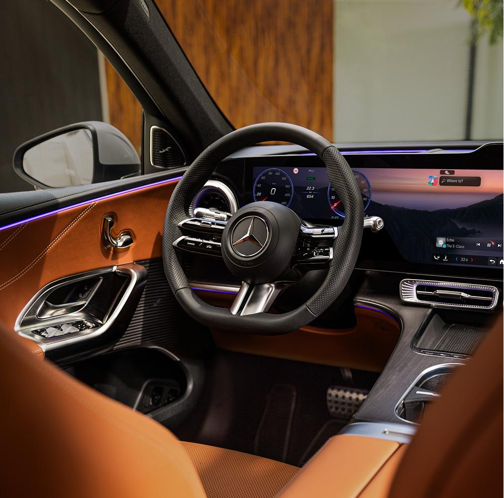 For the first time, we’re introducing upholstery with moccasin stitching, crafted for the all-new electric Mercedes-Benz GLC.