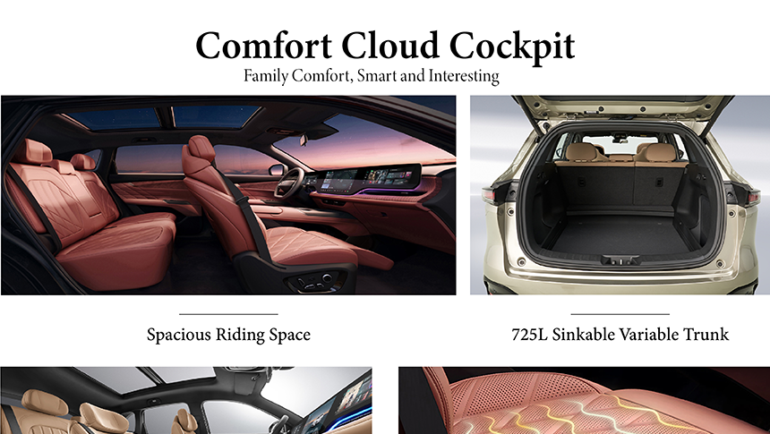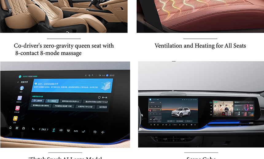 The Changan CS75 4th-gen PLUS Ultra redefines cabin luxury with its spacious riding space, embodying a large vehicle style that achieves comprehensive advancement in interior dimensions through optimized architecture. All seats feature advanced ventilation and heating functions, ensuring personalized comfort for every occupant in any climate condition. The co-driver's zero-gravity queen seat incorporates 8-contact point support with 8-mode massage technology, creating an unparalleled soft sitting sensation that transforms journeys into premium relaxation experiences. These sophisticated features work in harmony to establish new standards in automotive interior design where space innovation meets therapeutic comfort.