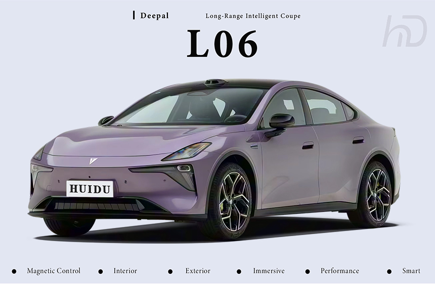 The Deepal L06 elevates aerodynamic innovation with tech-forward frameless rearview mirrors, integrating cameras and turn signals while reducing wind noise. Its dual light-bar floating tail lights create a distinctive nighttime signature through sequential dynamic lighting patterns. These advanced elements are seamlessly incorporated into the vehicle's sculpted body contours for optimal airflow management. The harmonious fusion of intelligent lighting and streamlined aesthetics establishes new standards in modern EV design.