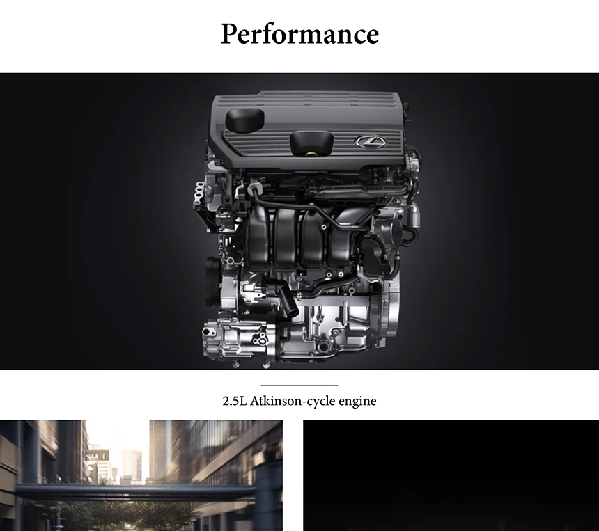 The Lexus ES delivers refined and efficient performance through its advanced hybrid system. It features a responsive 2.5L Atkinson-cycle engine working seamlessly with electric motors for instant torque. The ES300h intelligent hybrid model supports both gasoline and electric power, delivering strong performance on demand, while maintaining exceptional fuel efficiency. This synergy provides a powerful, smooth, and serene driving experience that defines modern luxury mobility.
