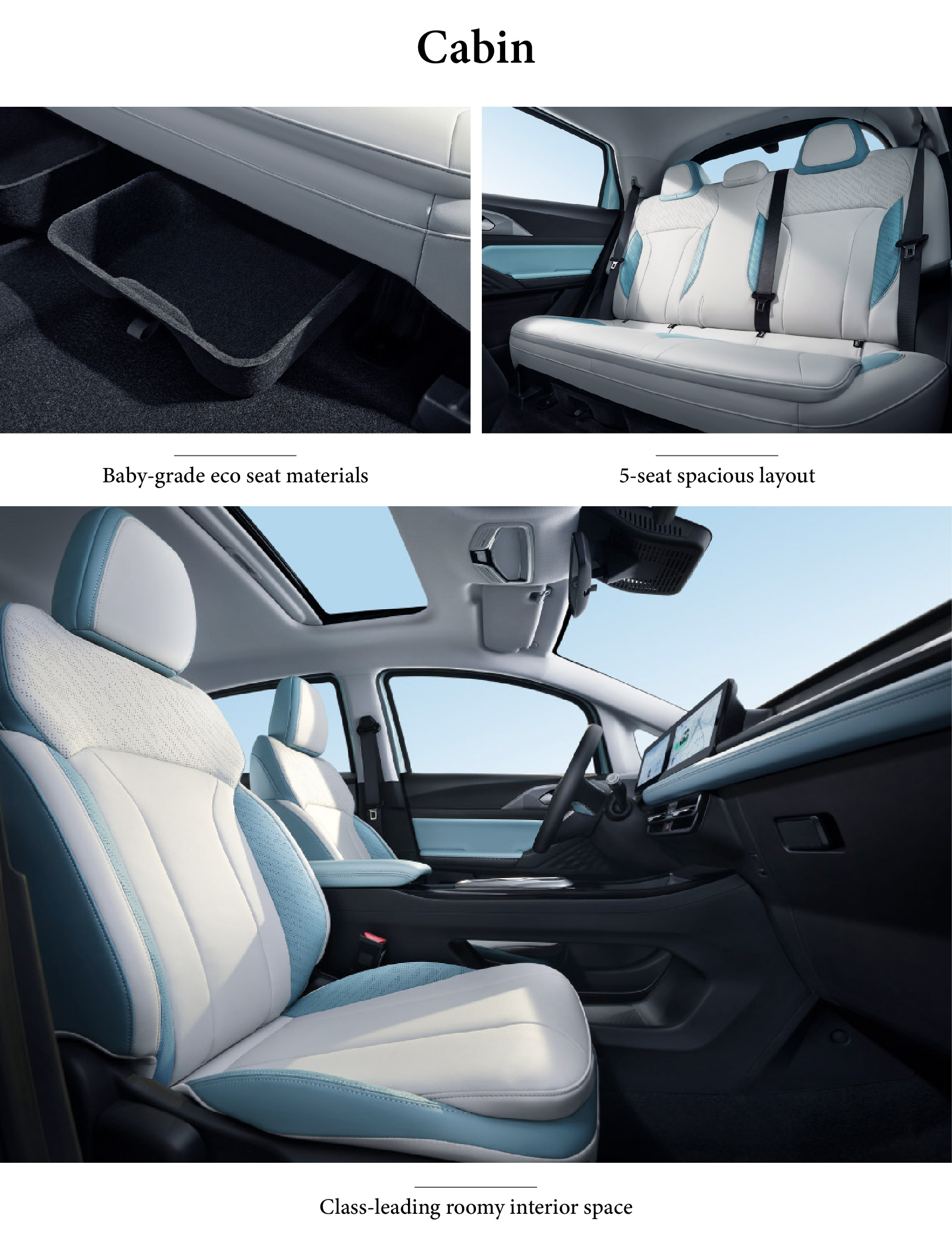 The Geely Geometry E Firefly prioritizes family safety with Baby-grade eco seat materials, ensuring a hypoallergenic, odor-free environment for the most sensitive passengers. Its 5-seat spacious layout offers practical comfort, accommodating families and cargo with thoughtful versatility. The vehicle delivers Class-leading roomy interior space, providing ample headroom and legroom that surpasses expectations for its compact size. Together, these features create a welcoming, thoughtfully designed cabin where comfort, safety, and intelligent space utilization come together for a truly family-friendly experience.