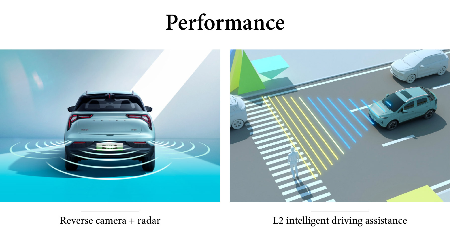 The Geely Geometry E Firefly enhances daily maneuverability with Reverse camera + radar, providing clear visual and audible guidance for confident parking in tight spaces. Driving confidence is further elevated by L2 intelligent driving assistance, offering adaptive cruise control, lane keeping, and automatic emergency braking for reduced driver fatigue. Complementing this is 165 mm high ground clearance, enabling the vehicle to navigate varied urban terrains and light off-road conditions with ease. Together, these features deliver a versatile, safety-minded driving experience tailored for both city streets and weekend adventures.