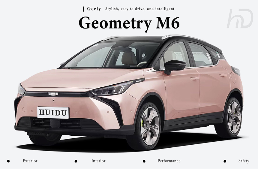 The Geely Geometry M6 features a sleek, aerodynamic SUV silhouette with a clean front fascia, through-type LED light bars, and flush door handles for a refined, modern appearance. Its tech-forward interior showcases the HarmonyOS-powered smart cockpit, featuring a large central touchscreen, minimalist layout, and premium materials for a connected driving experience. Safety is reinforced by a high-strength steel body structure, comprehensive airbag system, and advanced battery protection ensuring peace of mind. Intelligent capabilities include seamless Huawei ecosystem integration, voice-controlled functions, L2-level driver assistance, and efficient powertrain delivering impressive range for daily commutes.