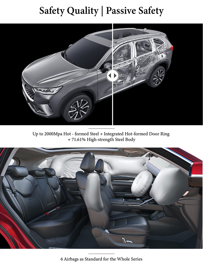 The Haval H6 is built upon the Great Wall Lemon Platform, a global, highly intelligent modular architecture that provides an exceptional engineering foundation. This platform enables an optimized body structure and flexible chassis tuning, significantly enhancing handling and safety. Advanced materials and manufacturing ensure outstanding safety performance and effective vehicle lightweighting. This solid technological base underpins the H6's hallmark reliability, efficiency, and refined driving quality.