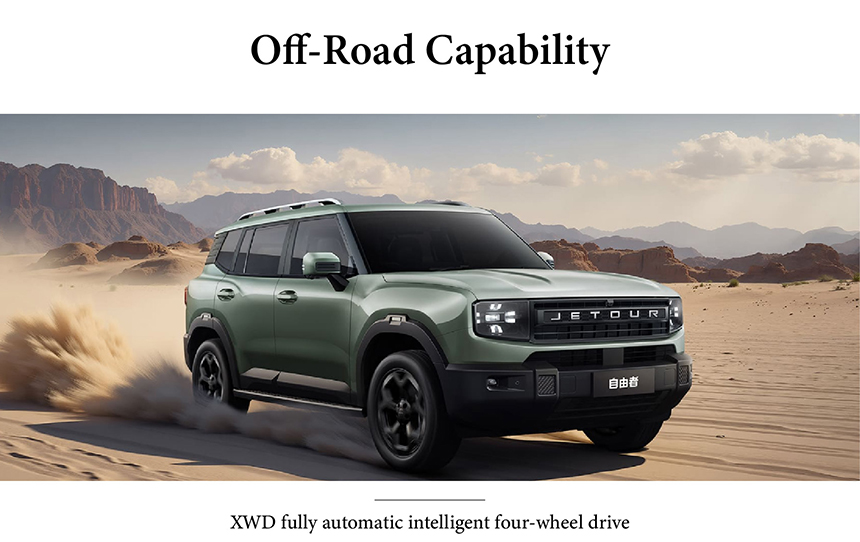 At the heart of the Jetour Traveller's capability is the XWD fully automatic intelligent four-wheel drive system. It seamlessly engages to provide optimal traction the moment it's needed, without requiring driver input. The system intelligently adapts to various terrains like snow, mud, or sand, distributing power for maximum grip. This ensures confident exploration off the beaten path while enhancing stability and safety during everyday driving.